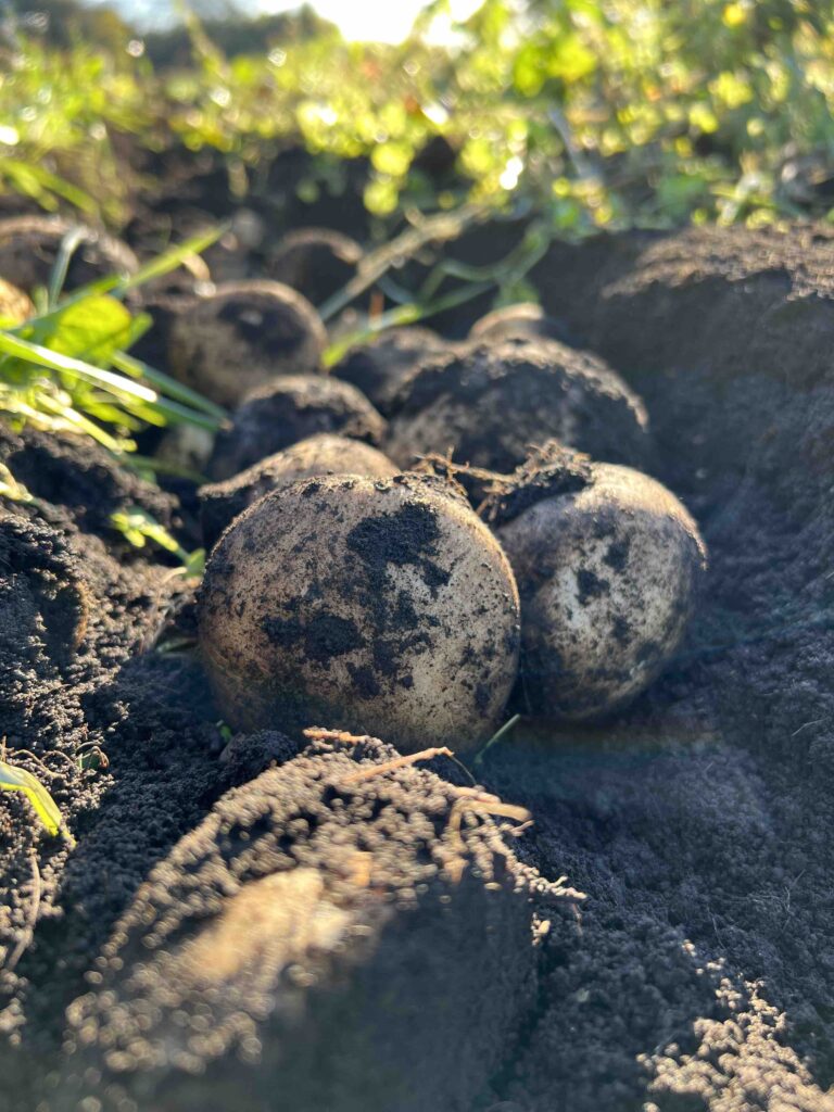 本日研修先で秋じゃがの収穫をしました。今年の秋じゃがは収量が少ないそうです。
