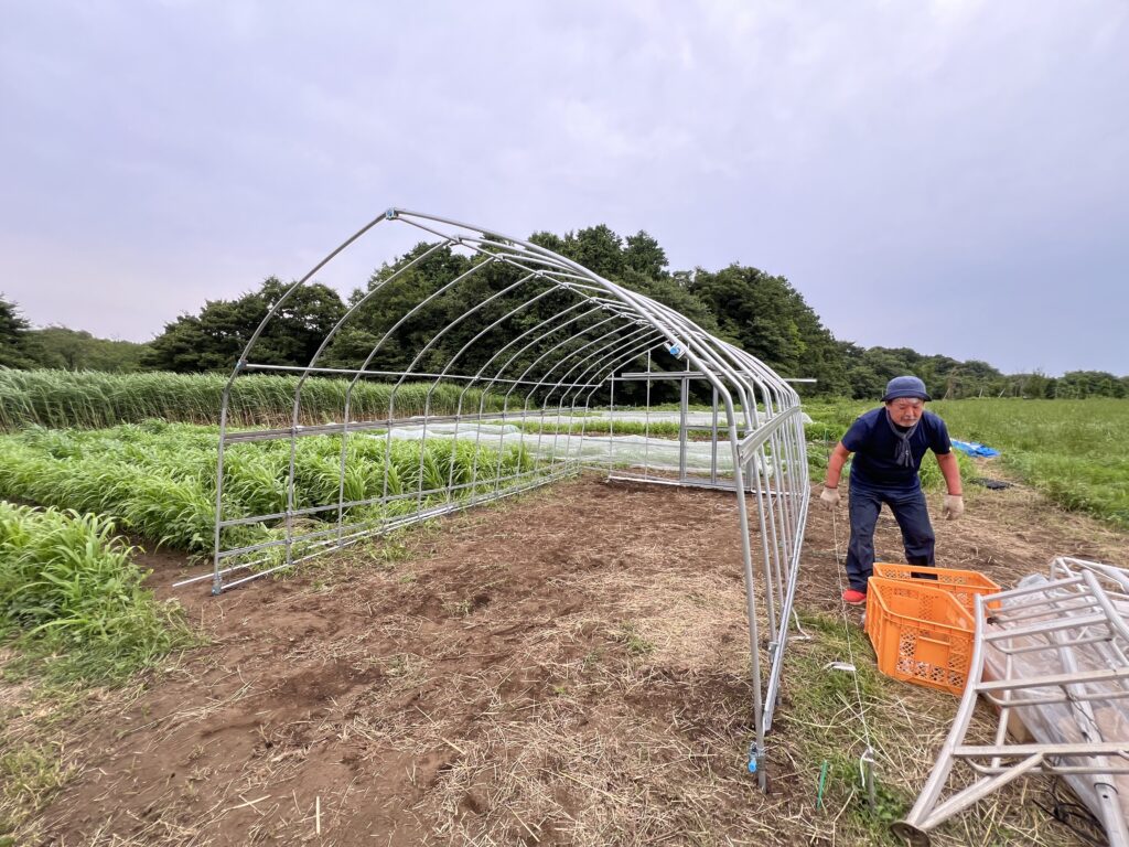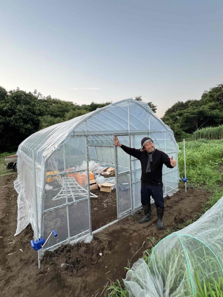 入江さんに5日間も酷暑のなか働かせてしまったのは本当に申し訳ない気分だったのですが、帰宅した入江さんは奥様から「最近で一番いい顔してるよ!」と言葉をかけてもらったそうで、よかったなと思うことにします。ビニールハウスという一見温もりの感じない建造物ですが、これだけの苦労をしたのでなかなか思いの詰まったハウスになりそうです。