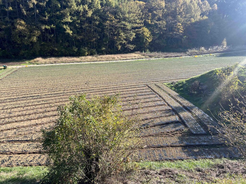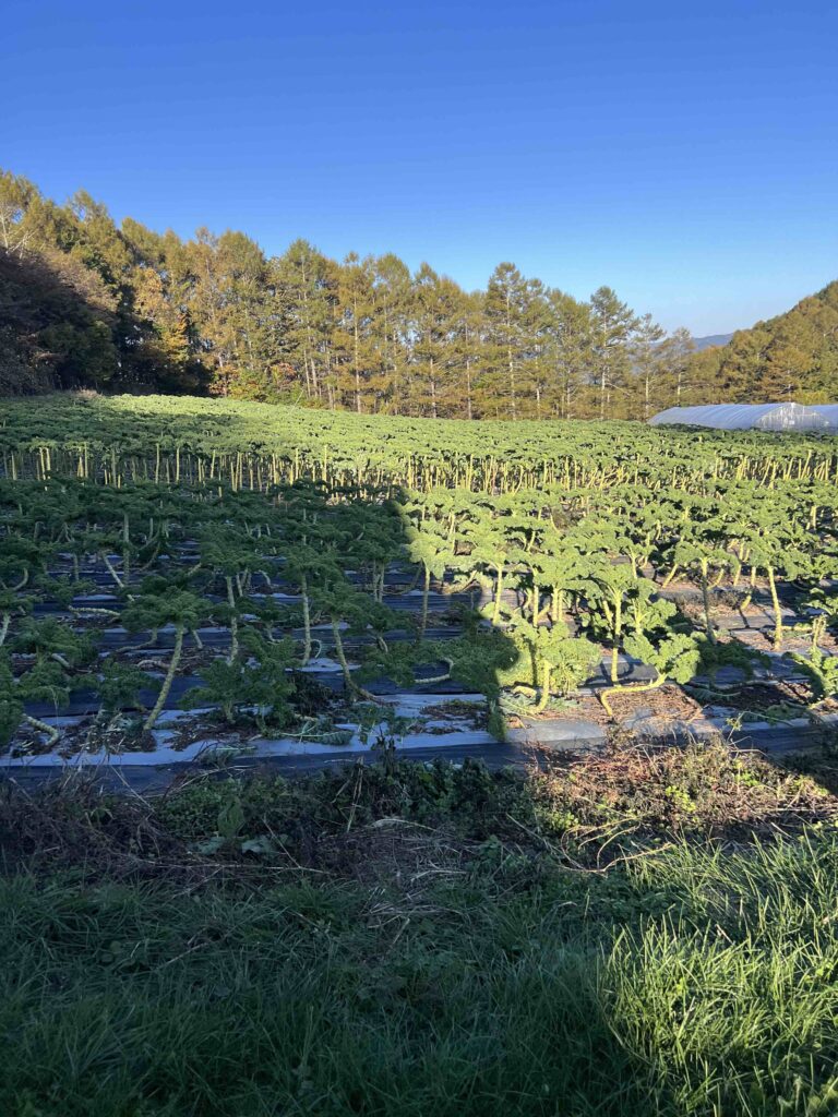 全国栄養価コンテストで毎年グランプリをとっているケール畑。中山間池ですべての畑が十分に日があたるわけだったり、傾斜地だったりとハンディがある土地で作られています。